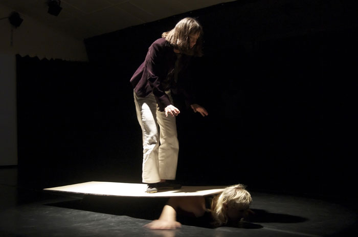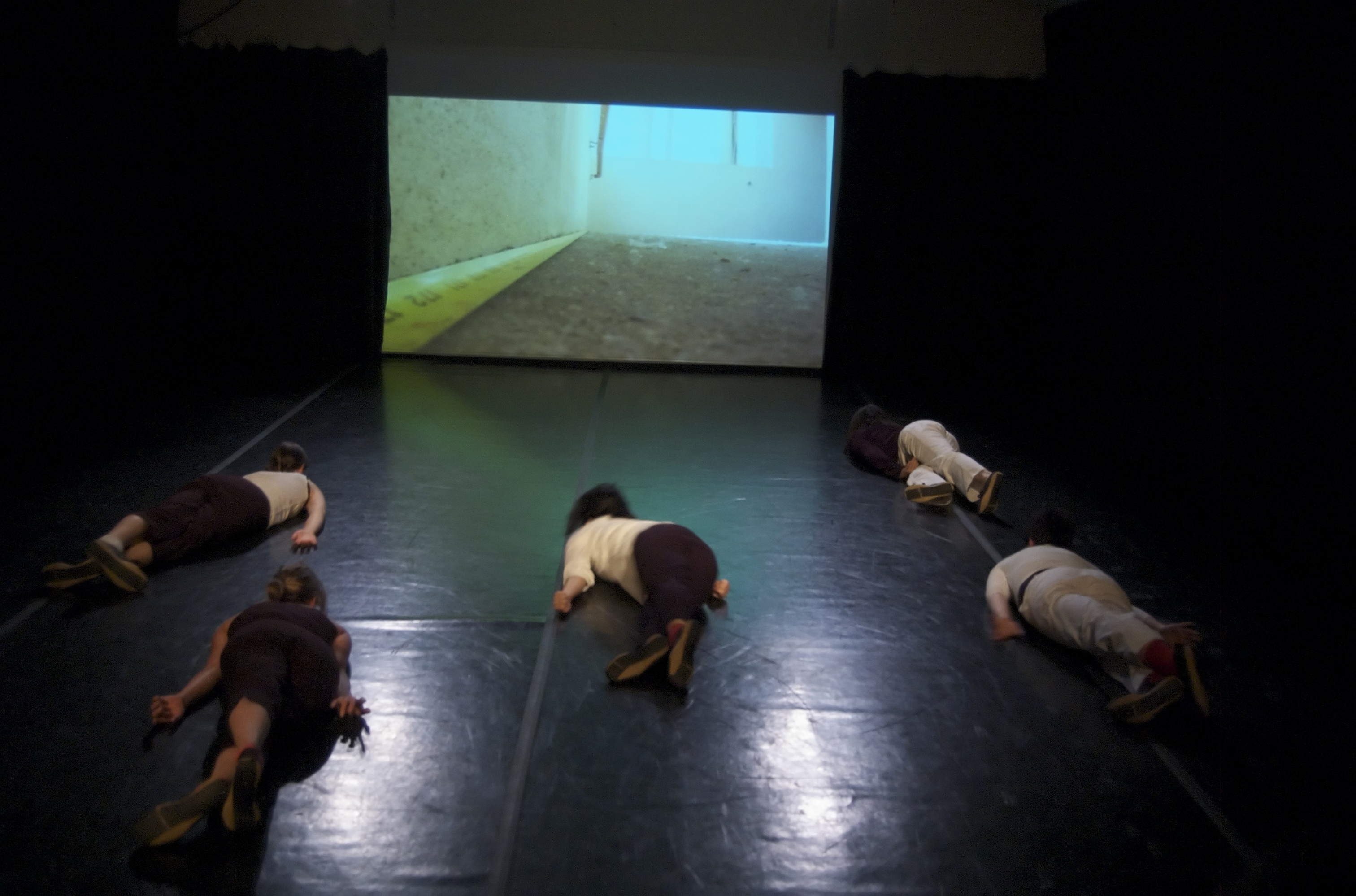 This dance performance, created and co-directed with Linda Austin, was based on a strategic “forgetting” of Seijun Suzuki’s 1967 cult yakuza film, Branded to Kill. Themes, images and language emerged in our thinking through , writing through, dancing through the freewheeling surrealism of the film. Against the back wall, projected fragments of video narrative and noir imagery flashed amidst the dancers.