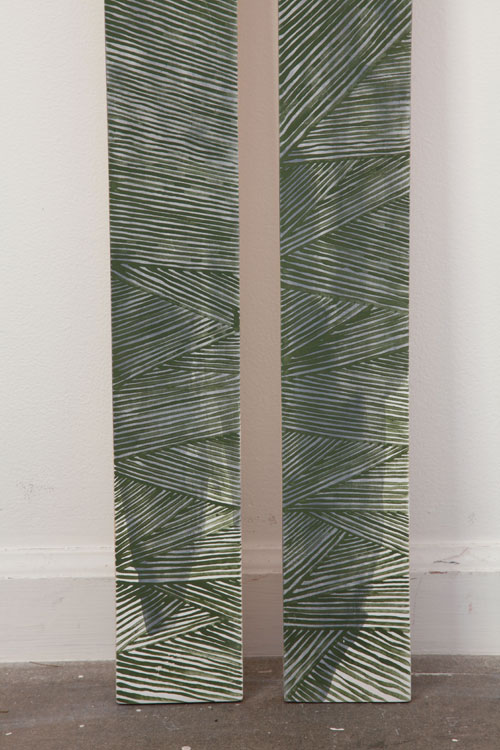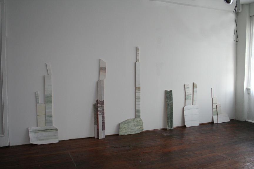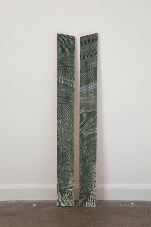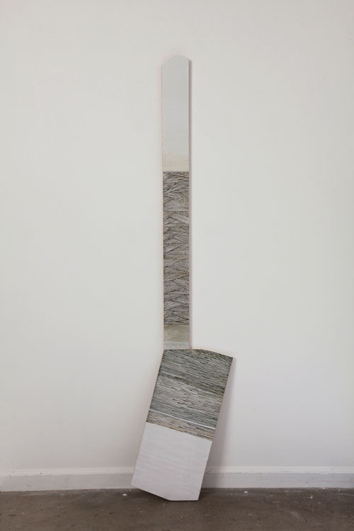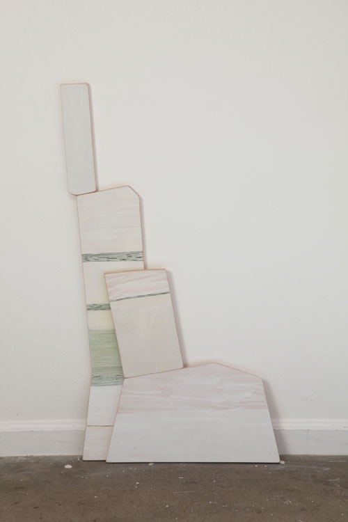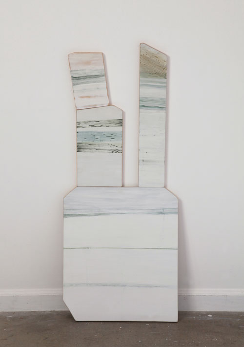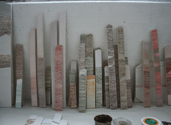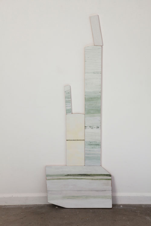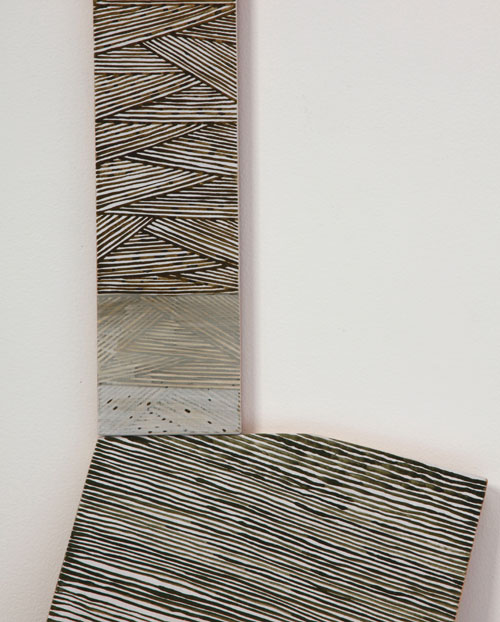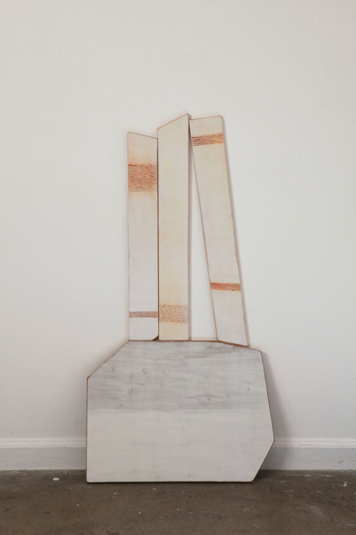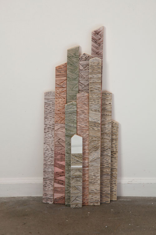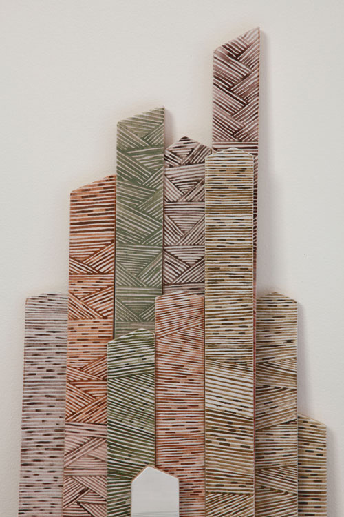 Earth pigments and gouache on shaped and stacked plywood