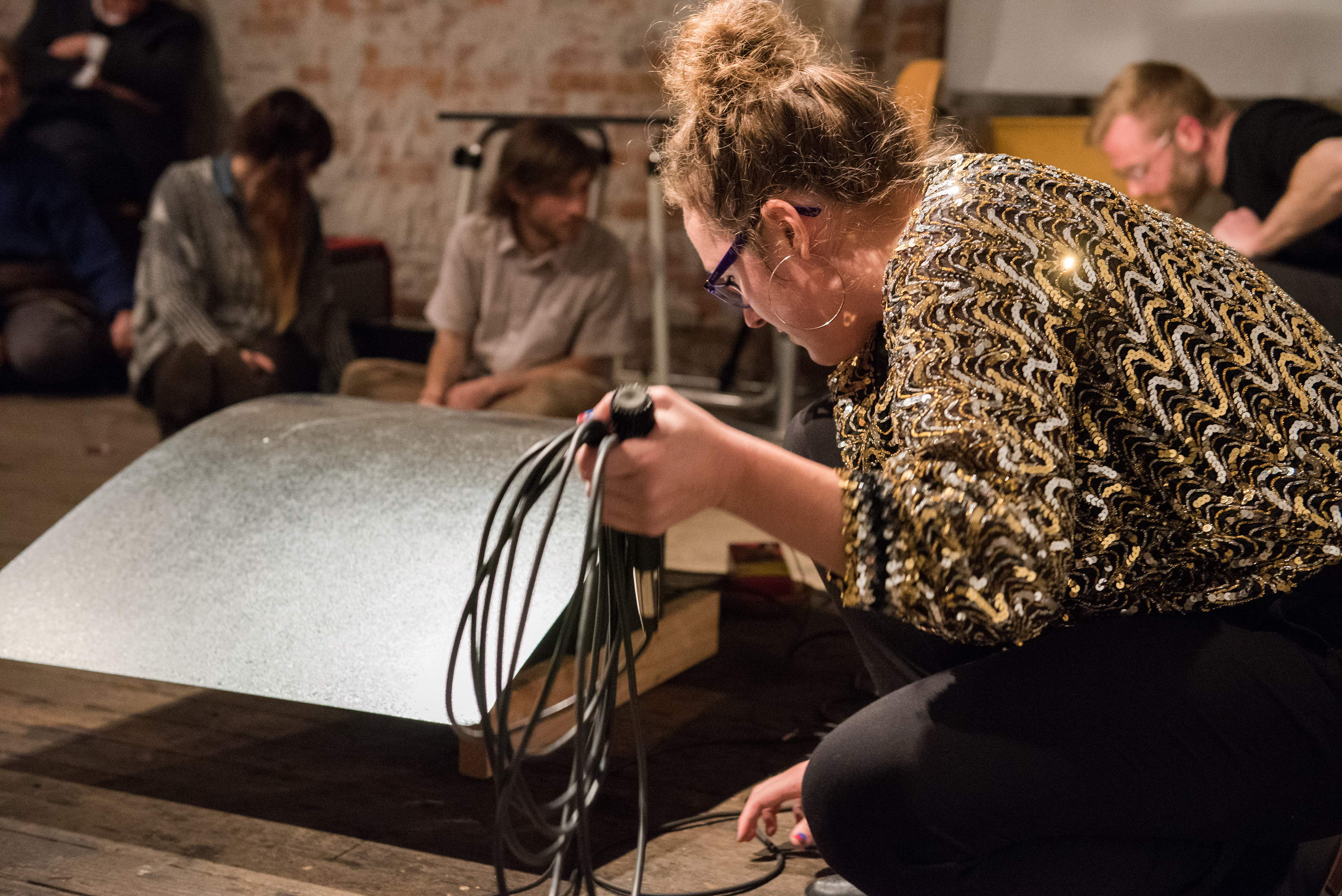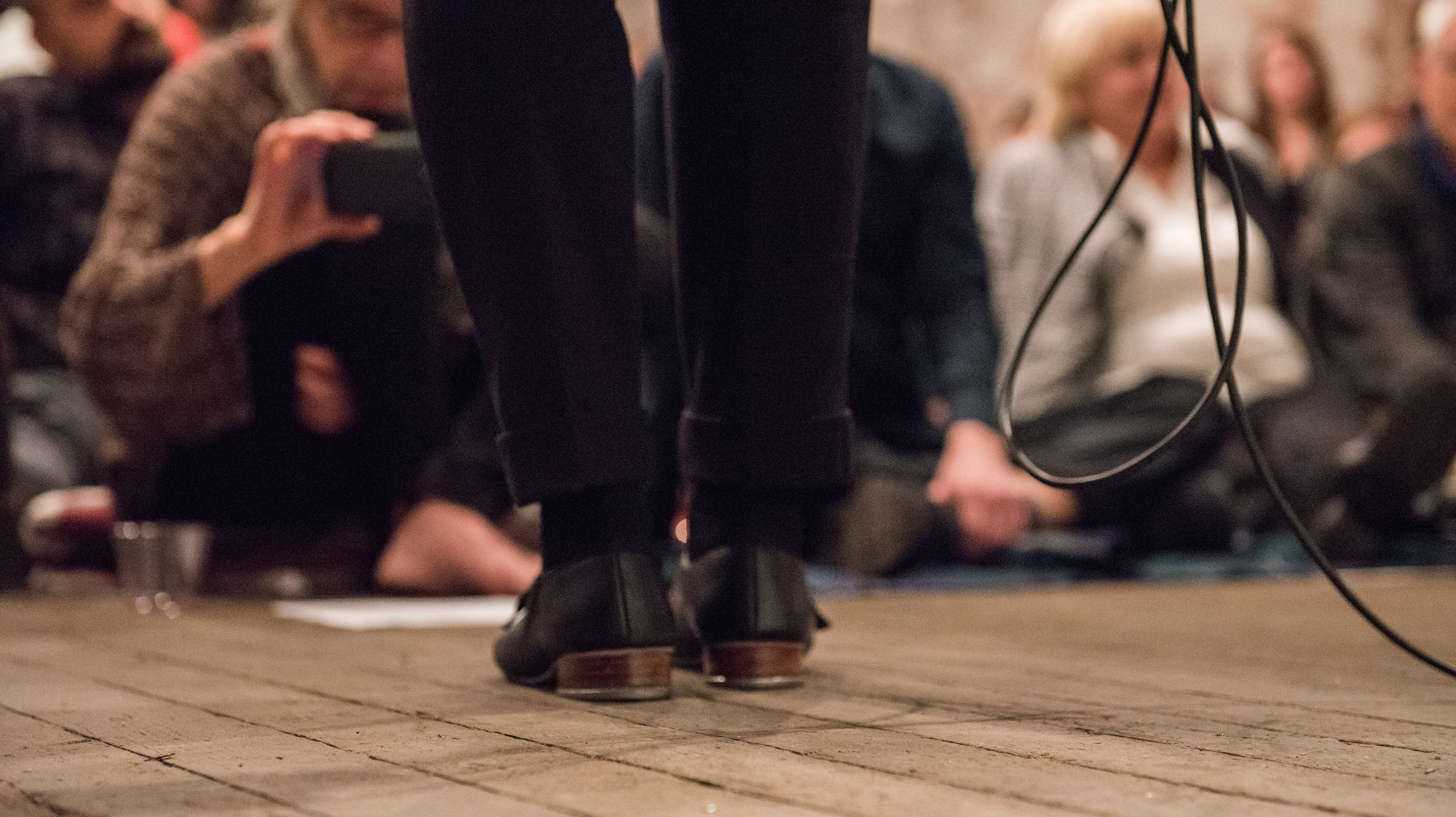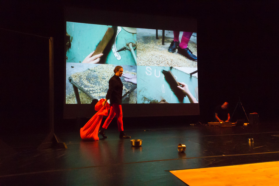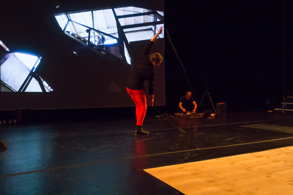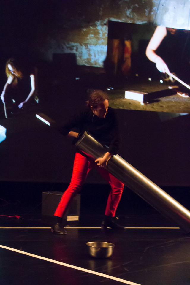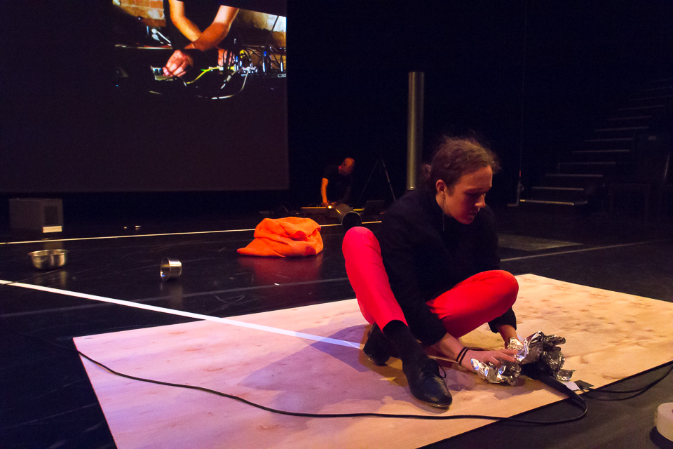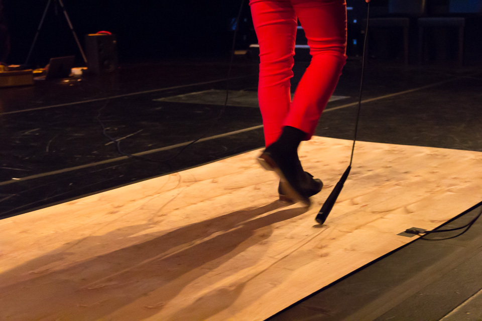 SNKR began with a two-minute performance using tap shoes and acoustic feedback through a large resonating metal sheet.