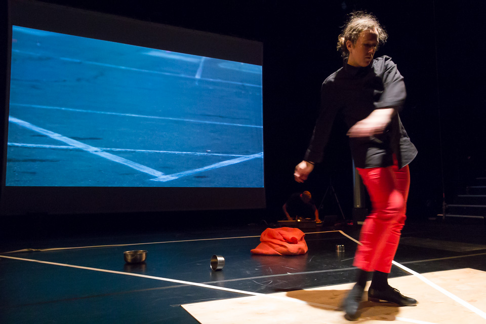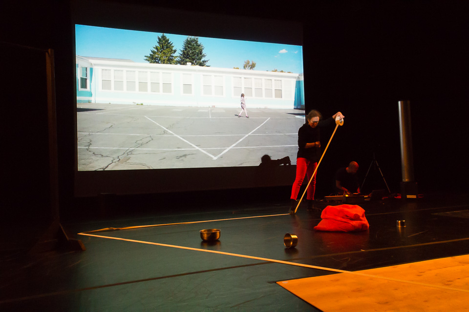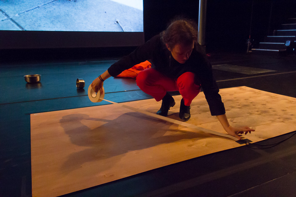 These videos were incorporated into a 20-minute performance at the Risk/Reward Festival in 2016. Against a large video projection, Rauer created on-stage shapes, moving sound-making objects and speakers, and arranging items in task-based sequences.  At the back of the stage, I created, mixed and processed sounds, including samples, contact microphones, acoustic feedback and a record player.  Near the end, a large-screen television was rolled onstage, displaying a live video feed of my hands.