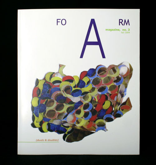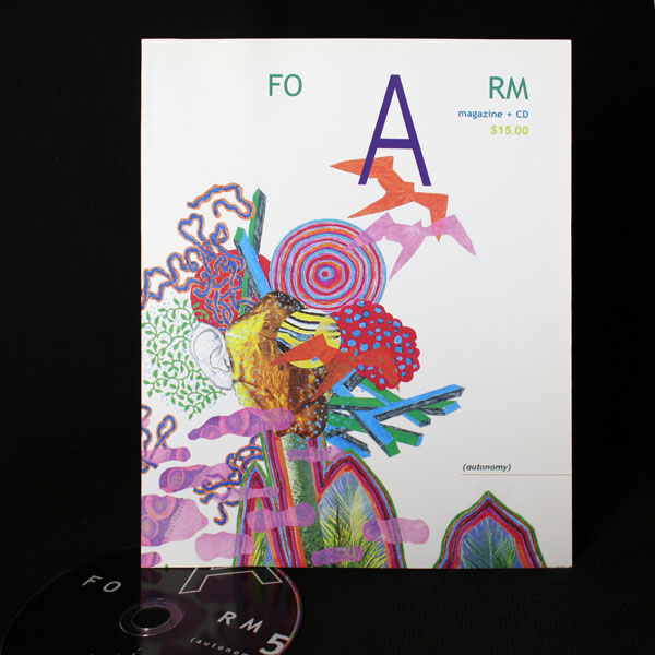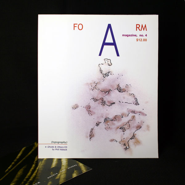 FO A RM magazine was a publishing project with Bethany Ides, Matt Marble and Joseph Bradshaw. Over the course of 6 years, five issues, three CDs, two exhibitions and a booklet, we mixed the work of composers, artists, performers and poets. Each issue was focused on a theme (Utility, Disembodiment, Duals & Doubles, Topography, Autonomy). Issue 4 was joined by the CD Ghosts and Others by Phill Niblock, Issue 5 contained a curated CD of sound works by contributors.
